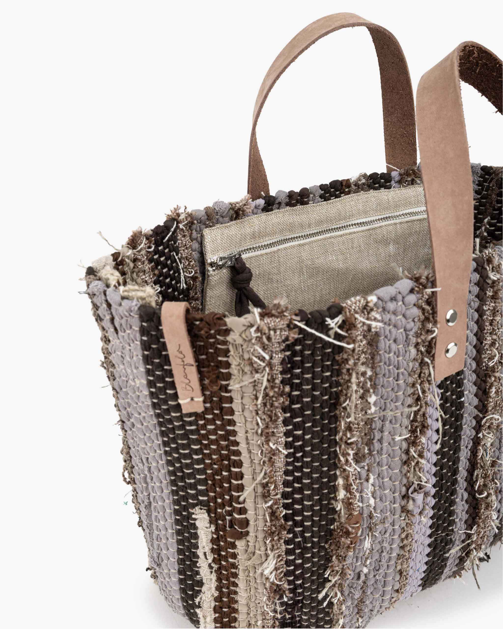 Unsere in Österreich liebevoll handgewebte Tasche verbindet Handwerkskunst mit Nachhaltigkeit. Jede Tasche ist ein Unikat aus recycelten Materialien, veredelt mit einem eleganten Lederhenkel für Stil und Langlebigkeit. Ein besonderes Accessoire mit Charakter – für alle, die Wert auf Qualität, Design und Umweltbewusstsein legen.